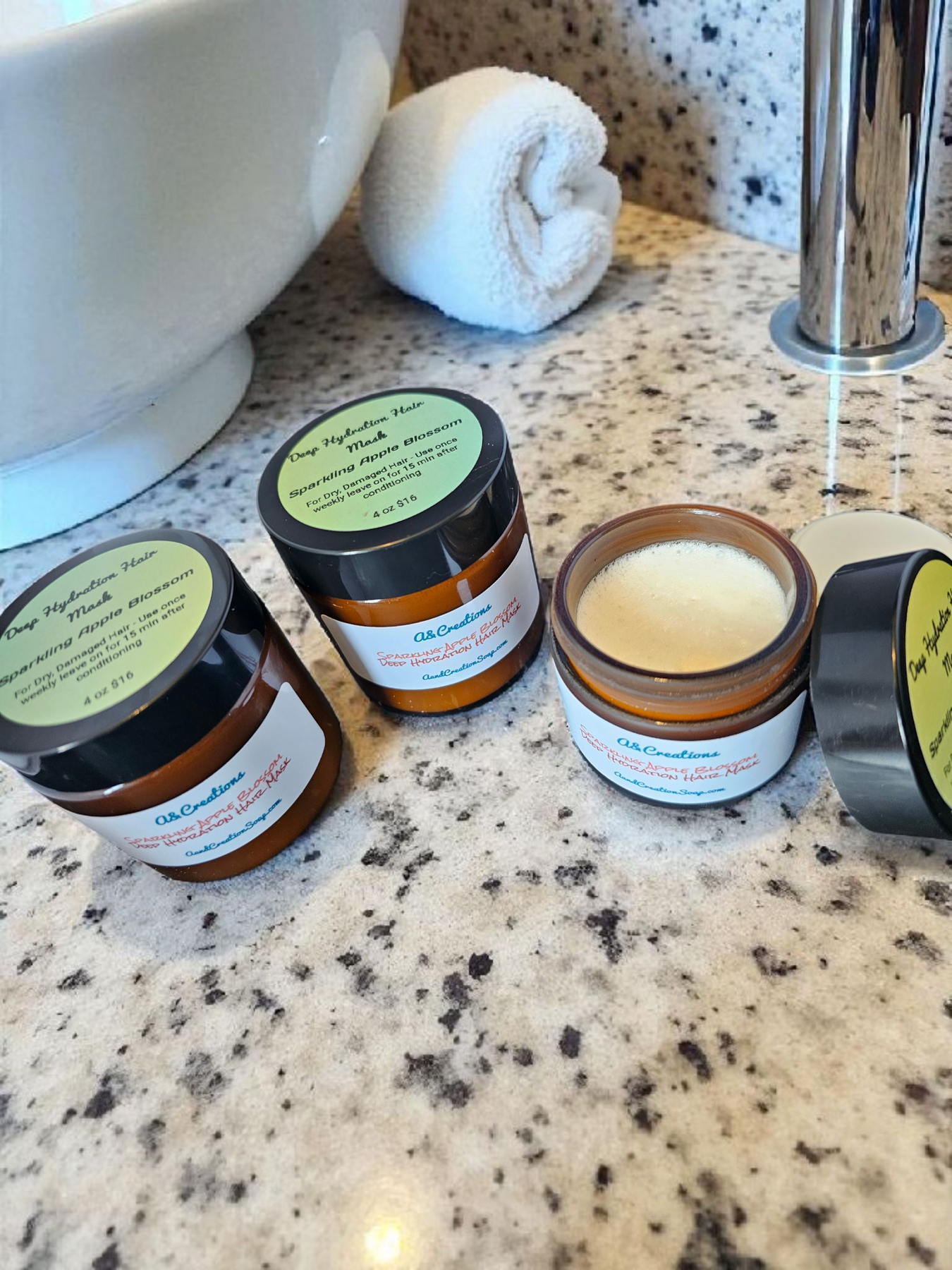 Our Deep Hydration Hair Mask is the perfect rescue for strands needing serious hydration. Whether your hair feels brittle from heat or dryness, Mask infuses every strand with rich moisture and a scent that lingers beautifully.