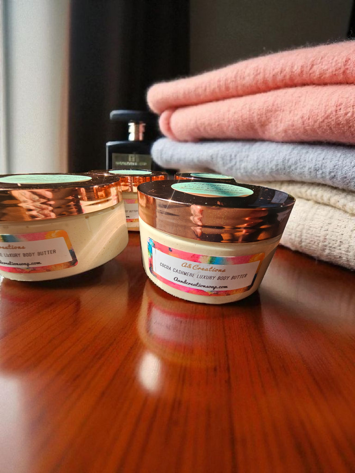 Cocoa Cashmere Creamy Body Butter is my answer to the in-between—something richer than lotion but not as dense as traditional body butters. I wanted a texture that glides on effortlessly but still leaves those stubborn dry spots (elbows, knees, heels) feeling deeply nourished for hours. The blend of avocado and cocoa butters creates that perfect creamy base, while jojoba and almond oils provide a soft, breathable finish. Scented with my favorite Cocoa Butter Cashmere oil, it’s a warm, comforting blend of tonka, sandalwood, amber, and vanilla that feels like a cozy hug on your skin. It’s a small indulgence that makes a big difference in your self-care routine.