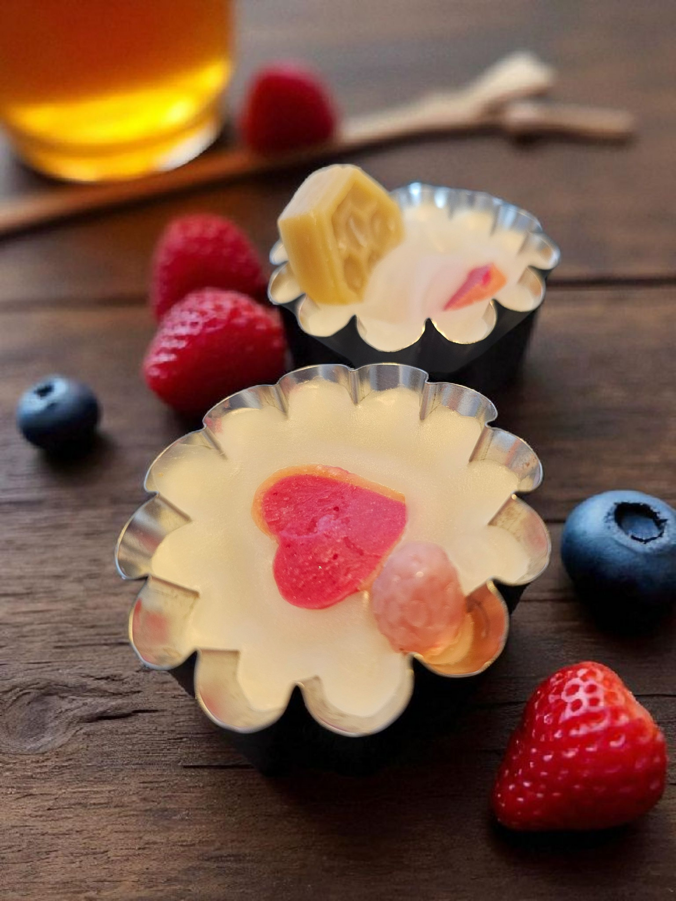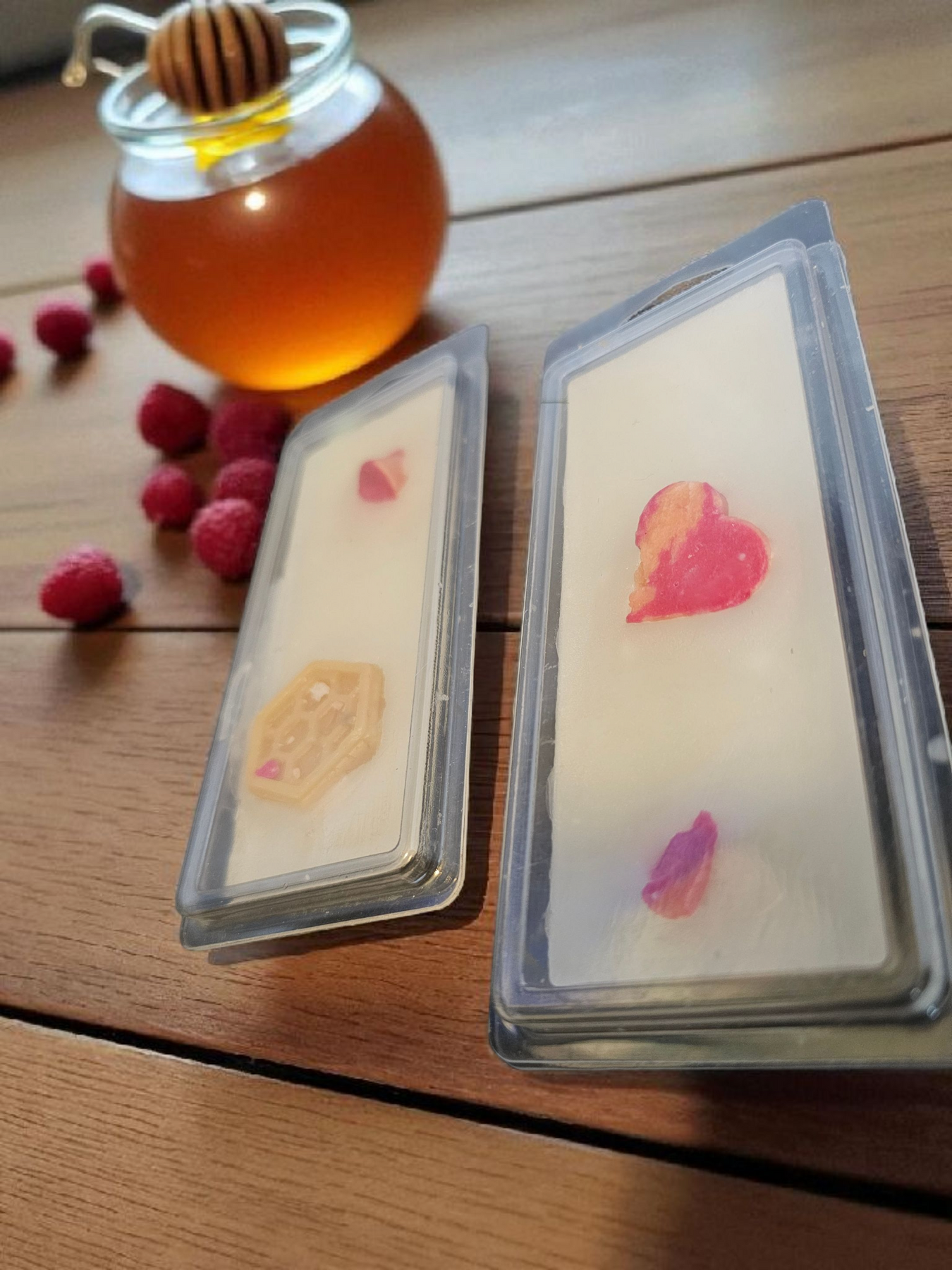- Honey Berry: A delectable combination of my pure honey and Raspberry jam signature scents, making for my absolute favorite scent. Made with white beeswax from my own hives!
