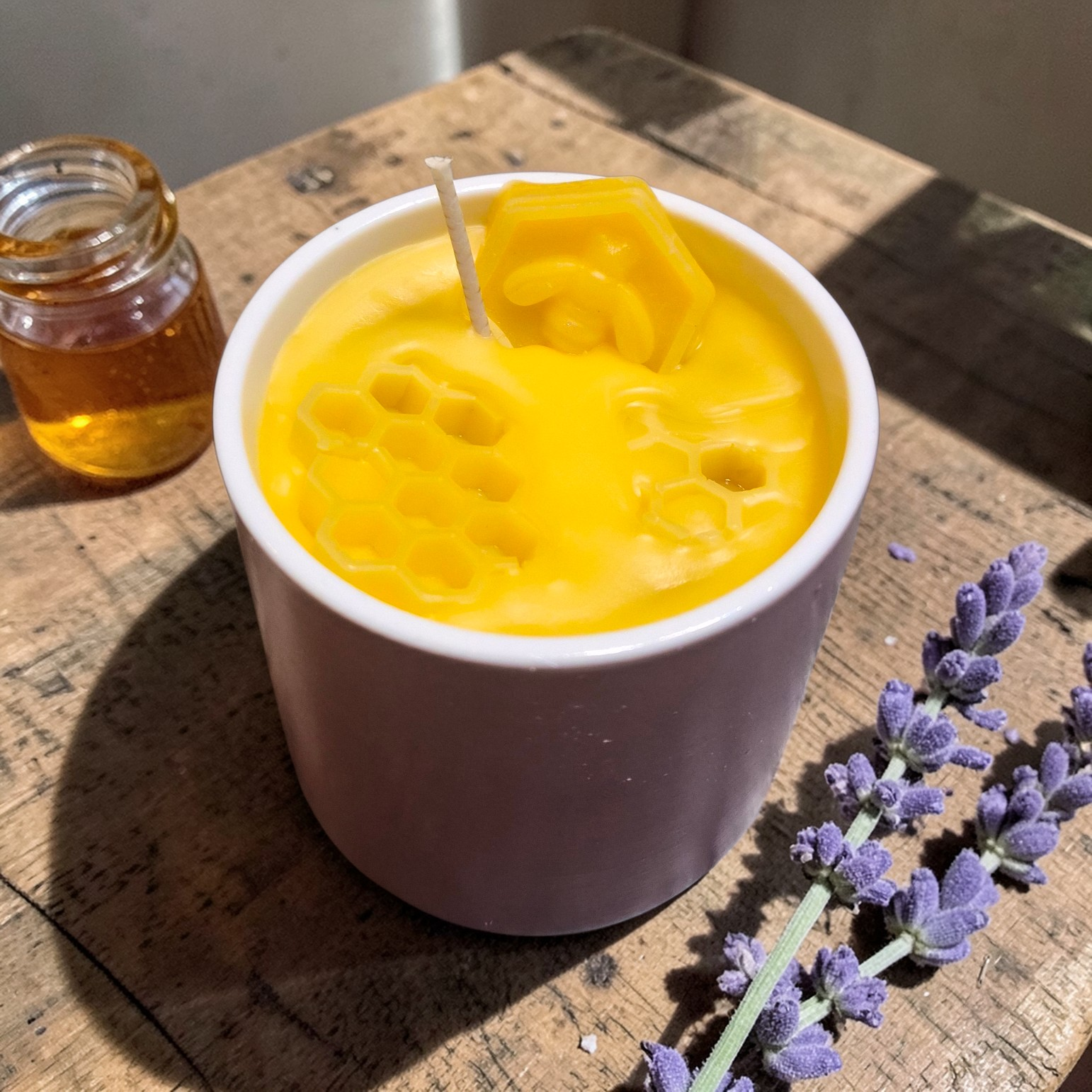 Both colors come in my signature honey wildflower fragrance because it matches with the beeswax theme and decorative embeds so well. These are also featured in lemon bar, coconut citrus sorbet, pink strawbeŕry, and peaceful lavender.