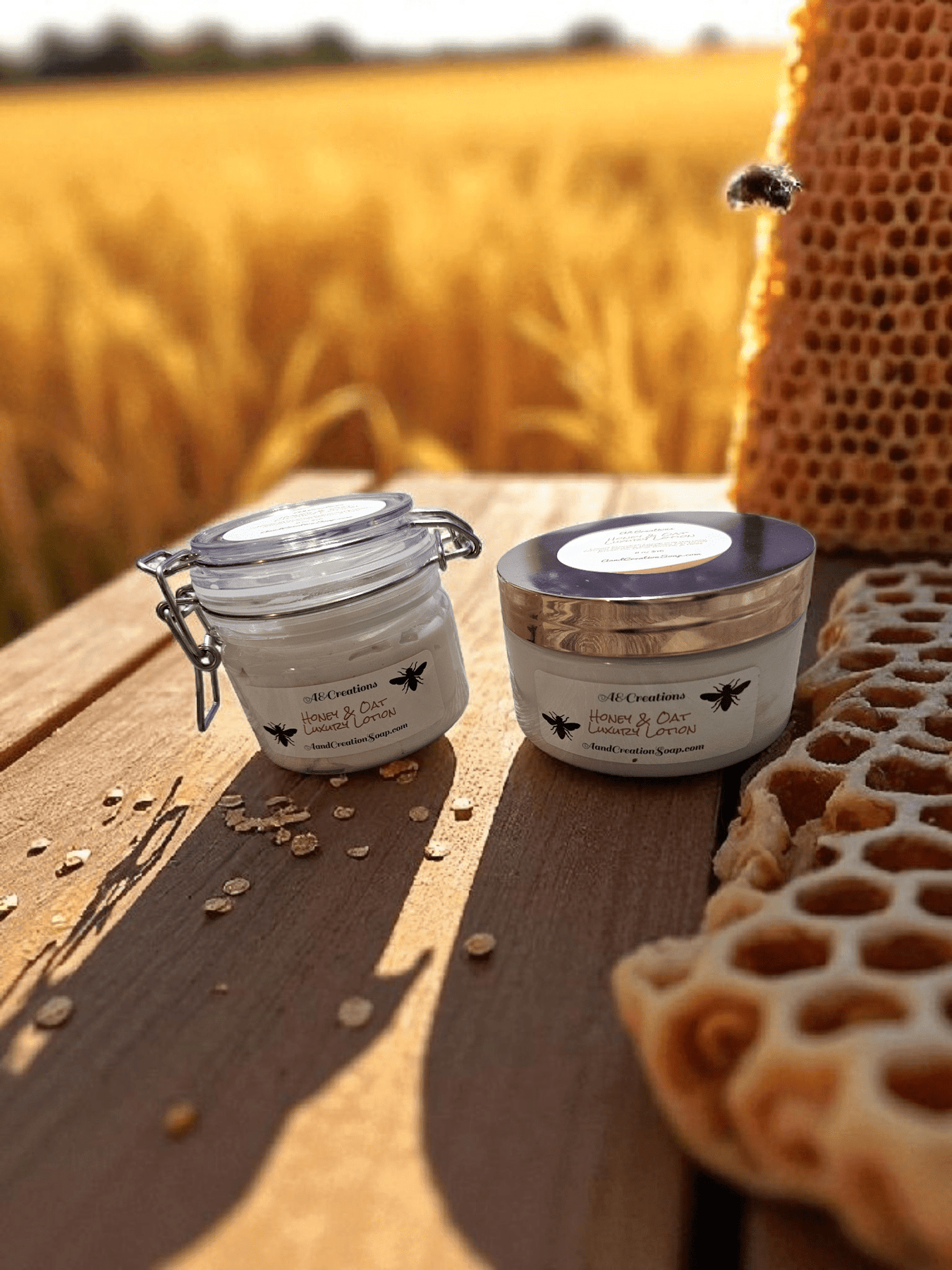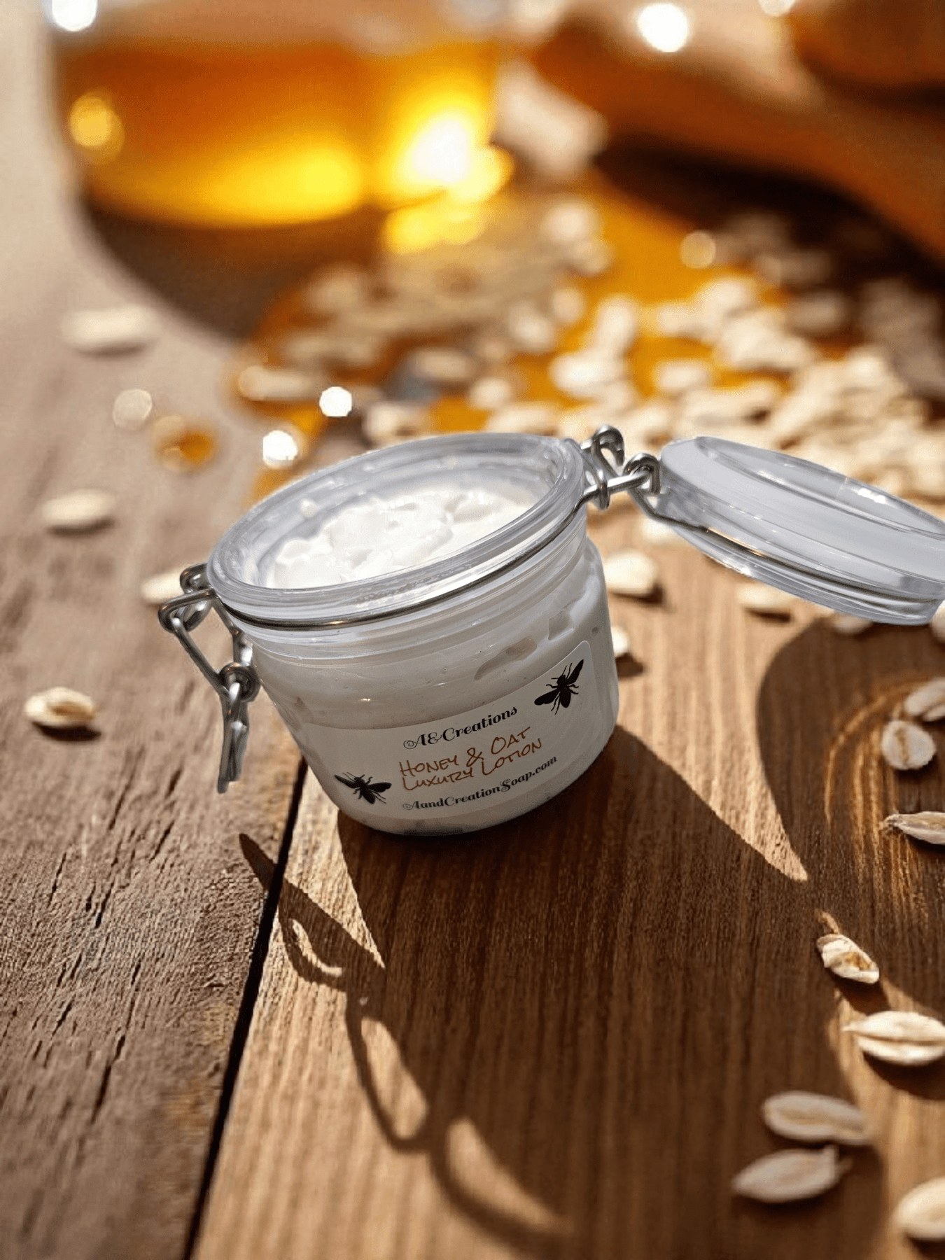 Ingredients: water, BTSM 50 Emulsifying wax, sweet almond oil, shea butter, yellow beeswax, colloidal oatmeal, honeyquat, chamomile extract, oat extract, optiphen, Raw honey, Golden Oats fragrance oils
