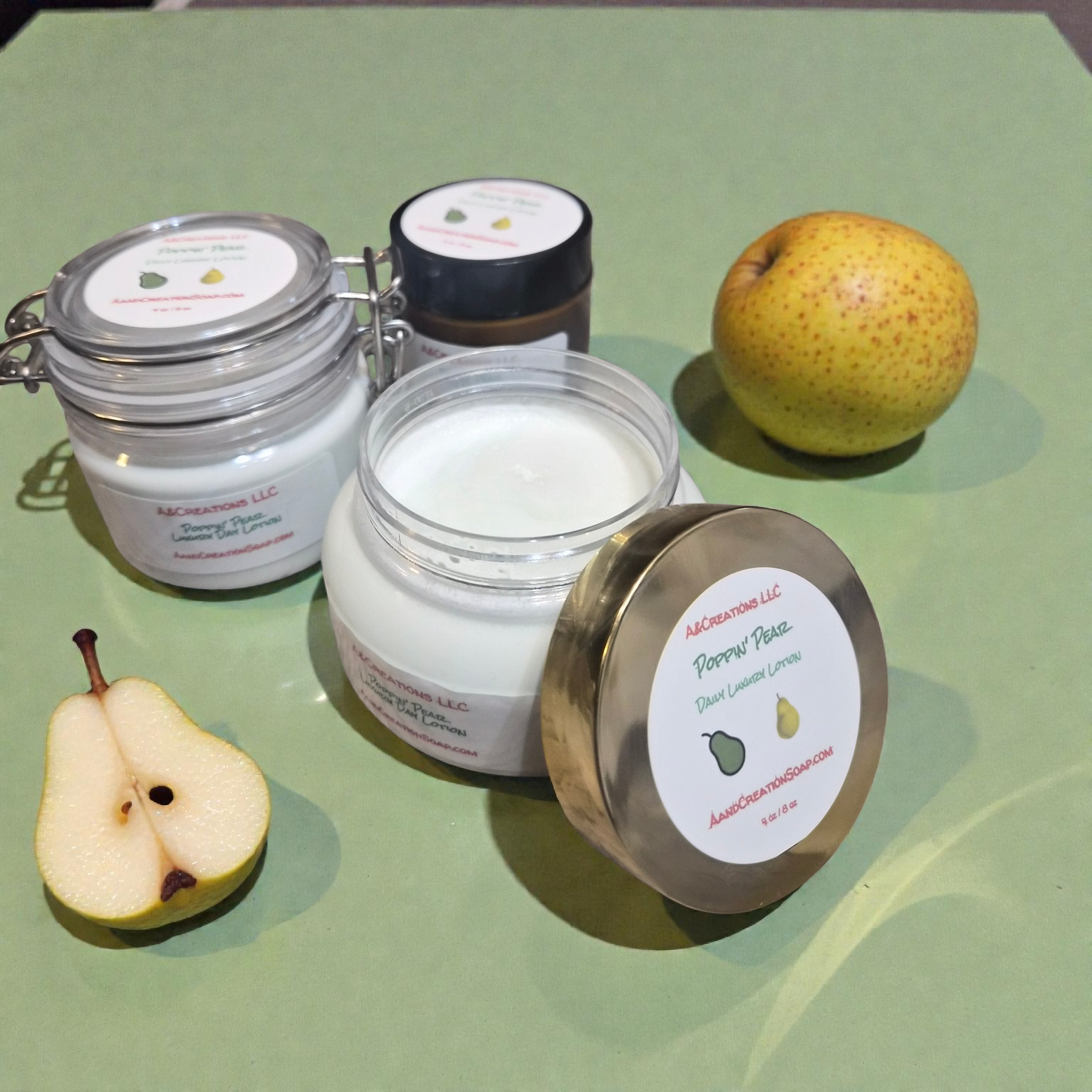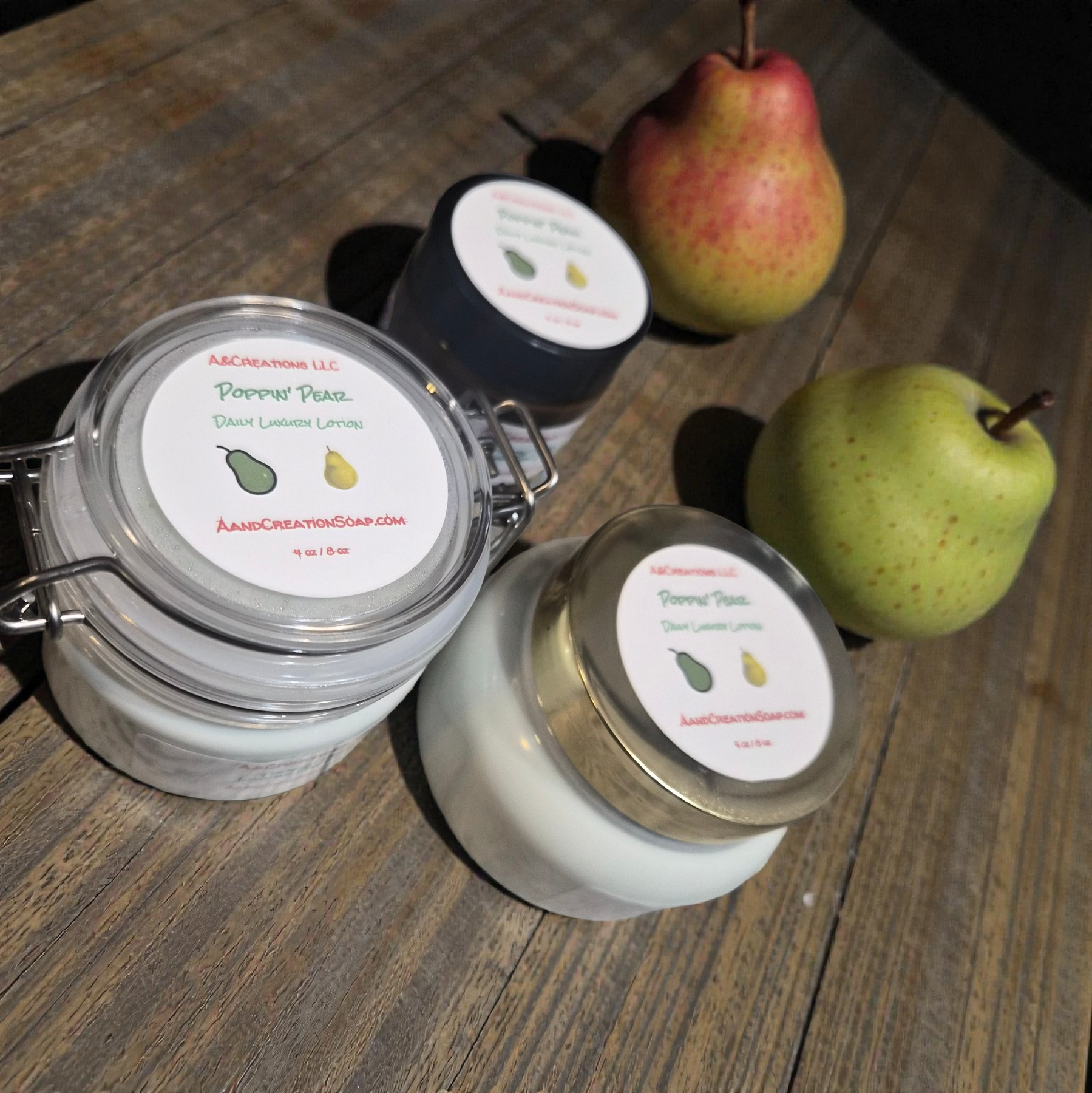 An incredible fruity mix of pear that really pops and grabs the senses! I have made this one of my signature scents after crafting this lotion because it smells so incredible on the skin with long lasting fragrance due to the high quality emulsified lotion.