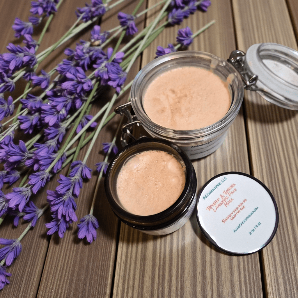 Ingredients: Rosehip & Jojoba Emulsified base with BTSM 50, Lavender water, Glycerin, Rose Clay, Chamomile extract, Geogard 221, fragrance oil